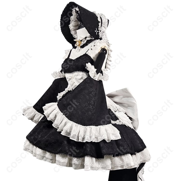 | セット内容 | ワンピース、背部蝶結び、袖、オーバースカート、帽子、つけ襟、襟飾り |