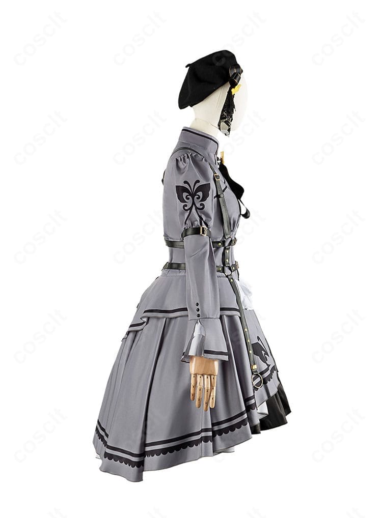 セット内容は、トップス、スカート、ベルトコンポーネント、リボン、腕ベルト、帽子、髪飾り、カチューシャ。衣装全体の世界観を整えやすく、キャラクターの空気感を出しやすいのがうれしいところ。サイズはS、M、L、XLをご用意しています。コスプレ専用生地を使用し、見た目の再現だけでなく、長時間の着用でも扱いやすい着心地に配慮されているのもポイントです。